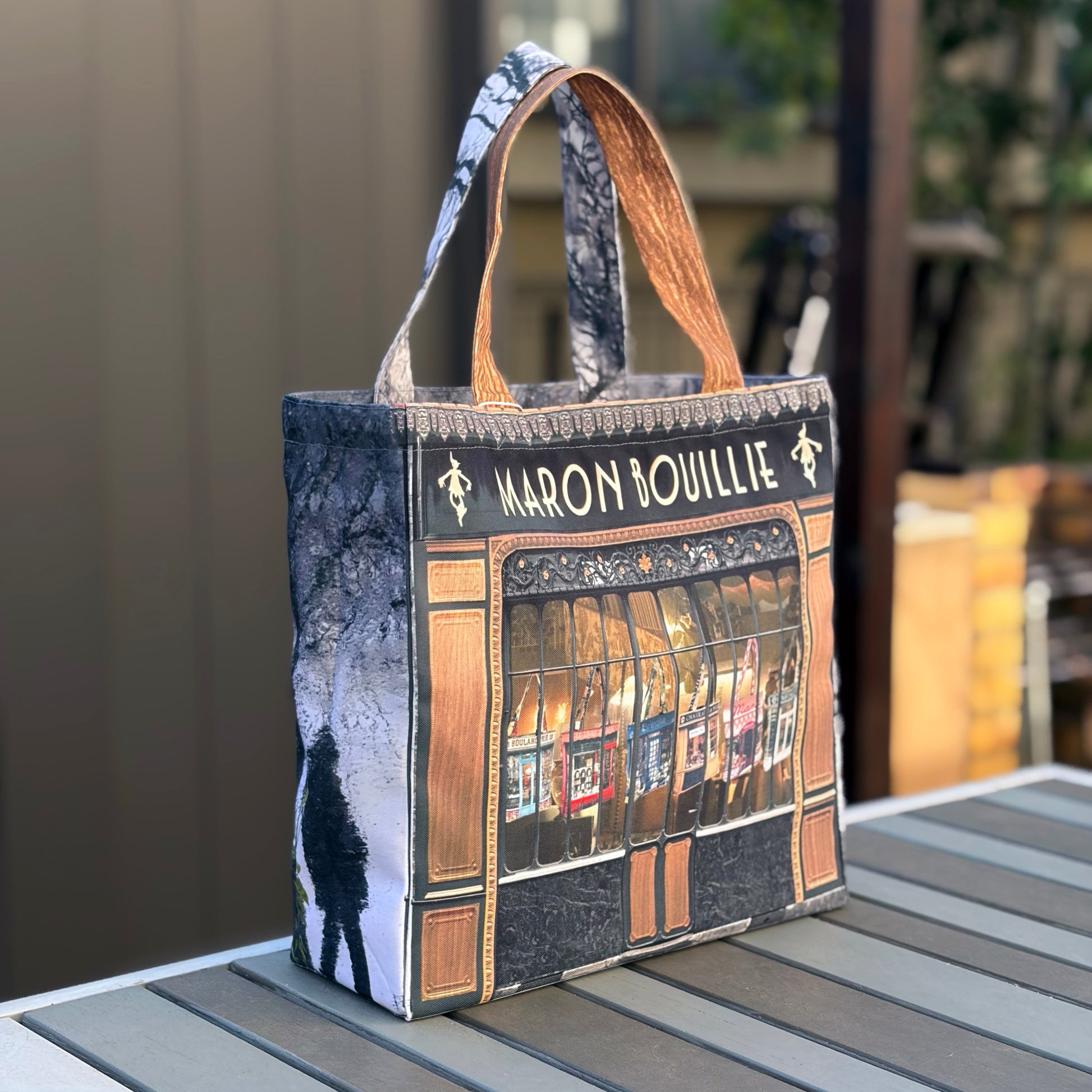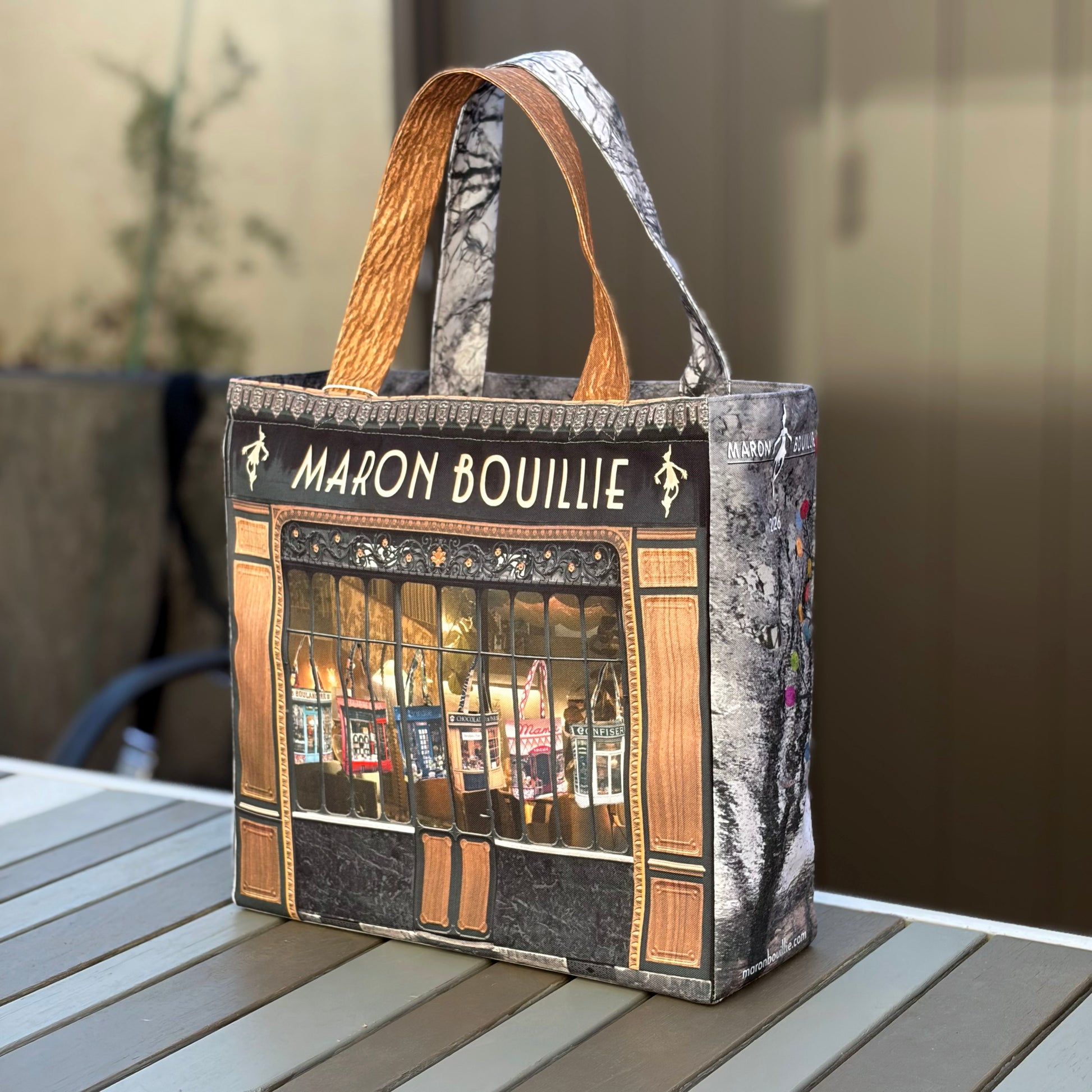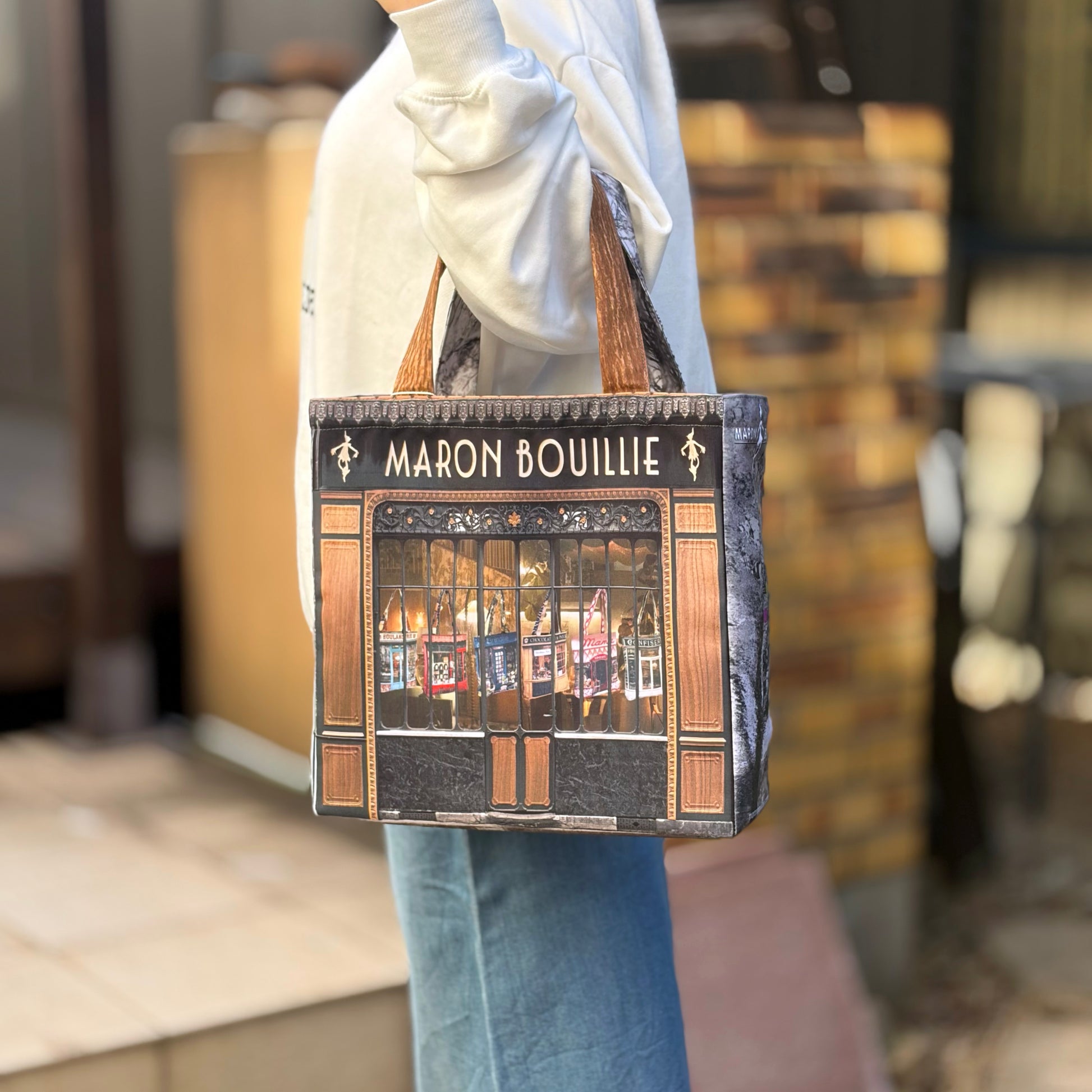 表面にはブランドの象徴である 「MARON BOUILLIE SHOP」 のロゴを大胆に配し、シンプルながらも存在感のある仕上がりです。