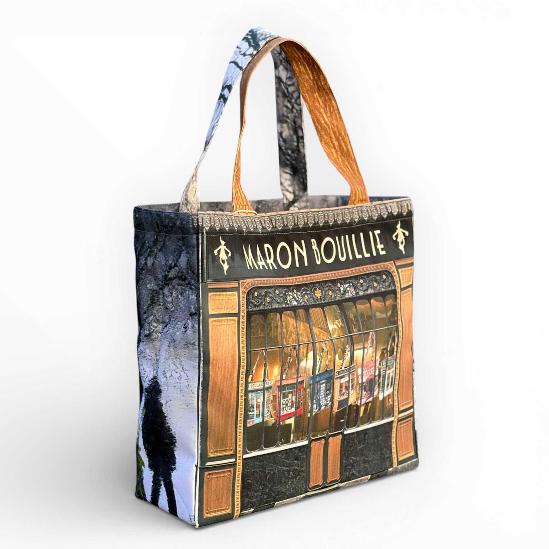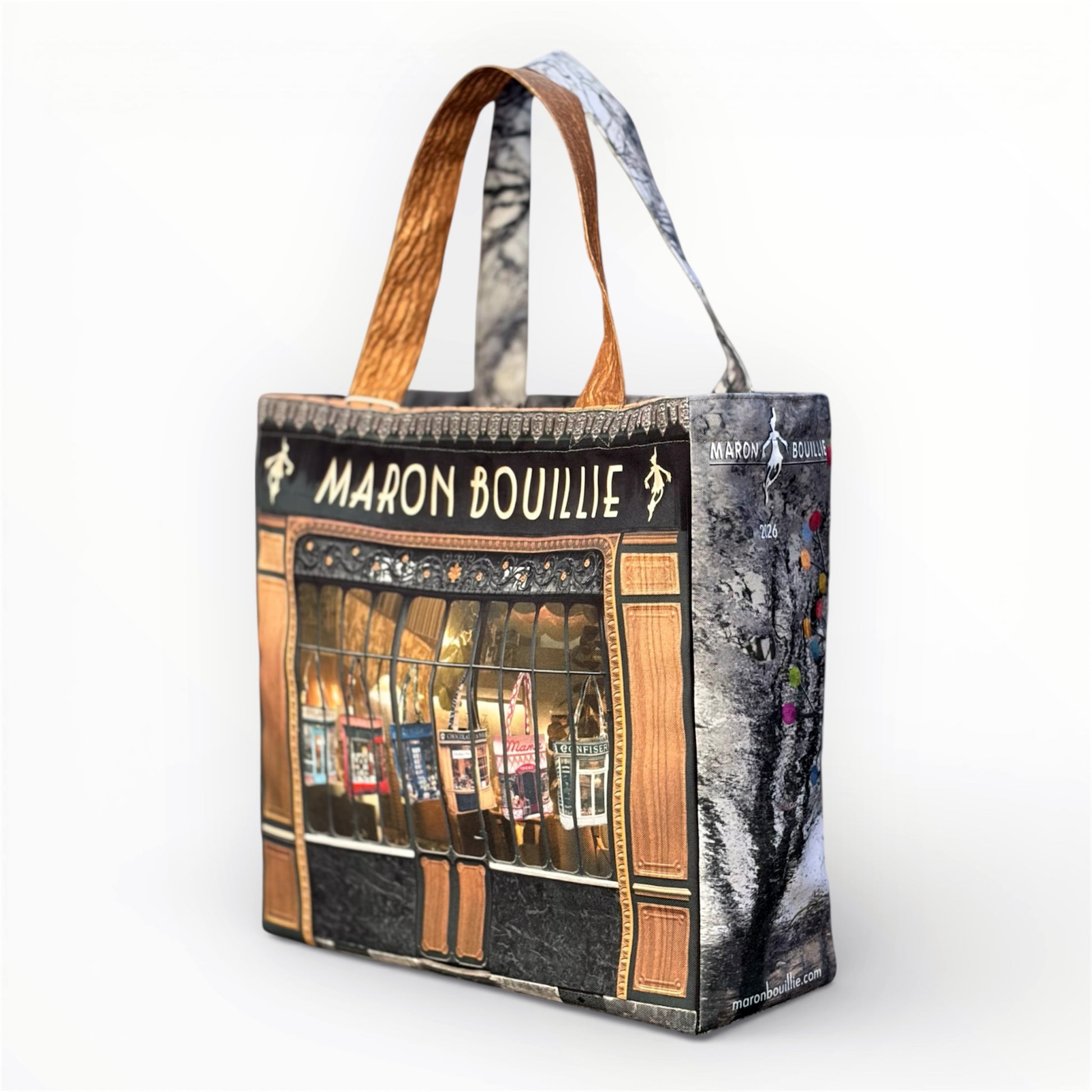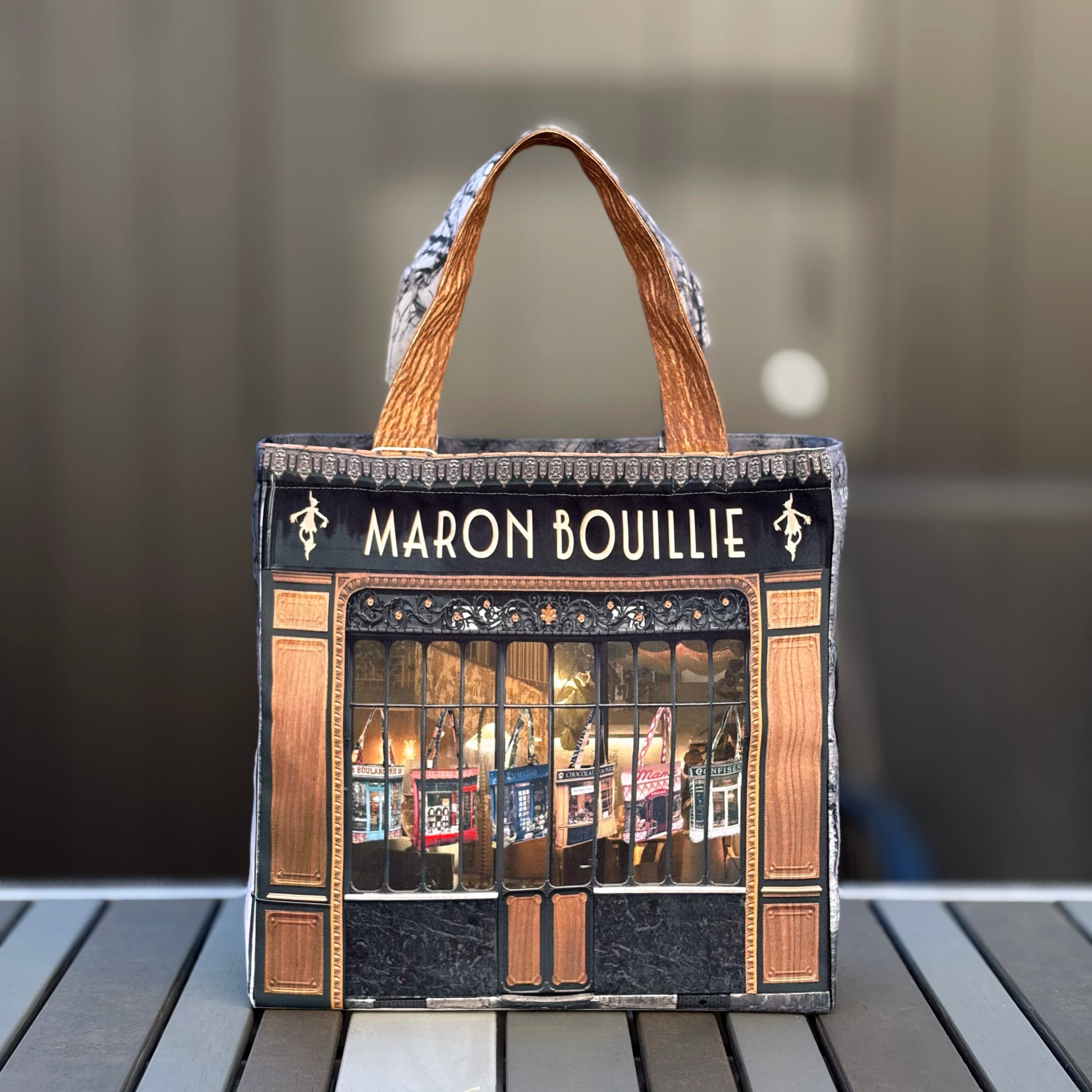 表面にはブランドの象徴である 「MARON BOUILLIE SHOP」 のロゴを大胆に配し、シンプルながらも存在感のある仕上がりです。