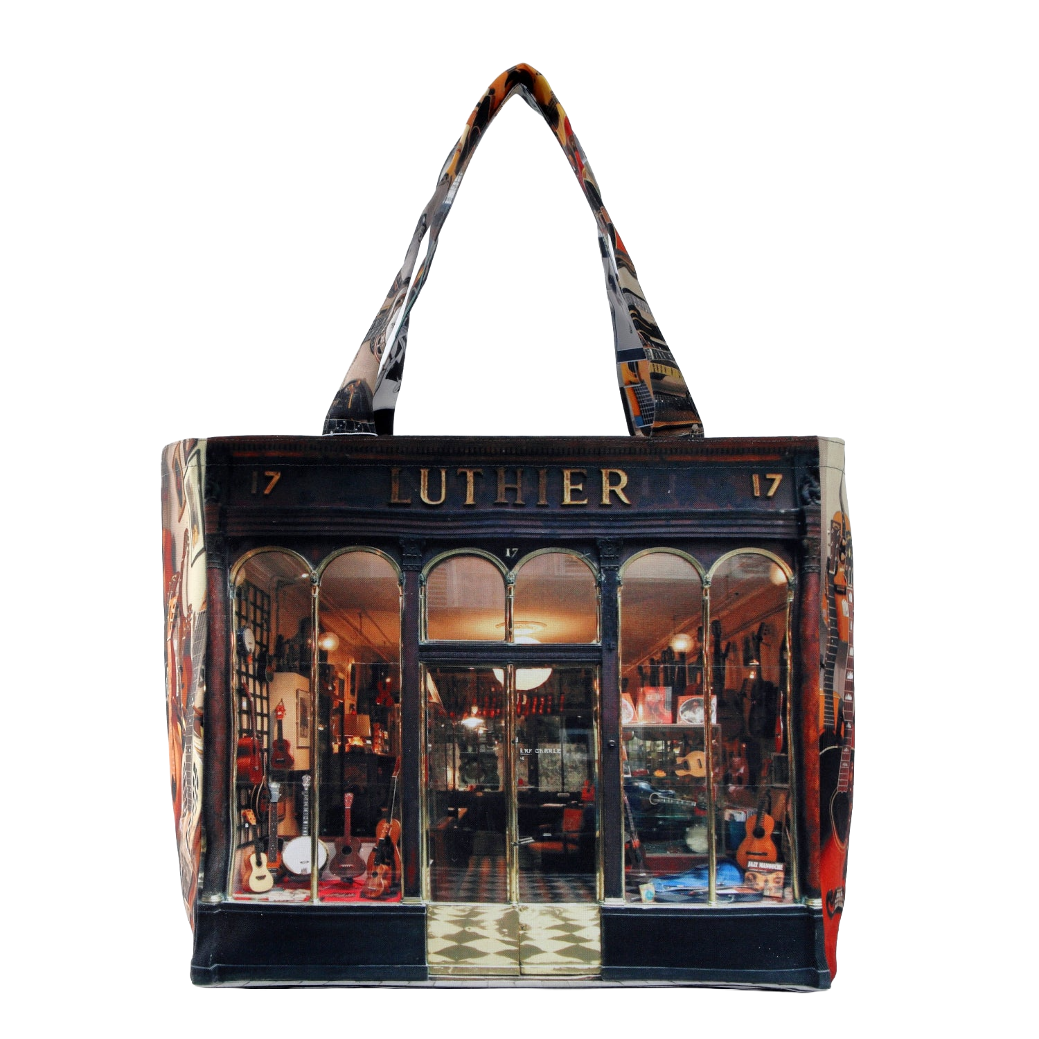 エレガントな装飾がとても上品なパサージュ「ギャルリー・ヴェロ・ドダ」の中にある老舗の弦楽器職人のお店の写真がプリントされたバッグ。重厚感のある雰囲気が伝わってきます。