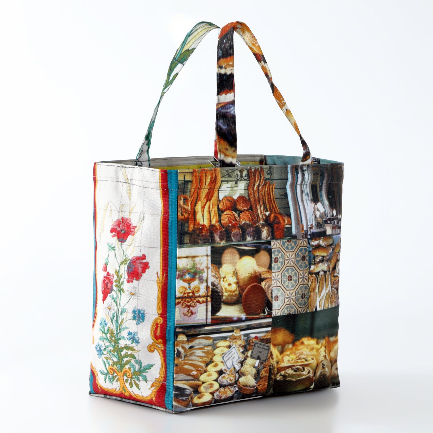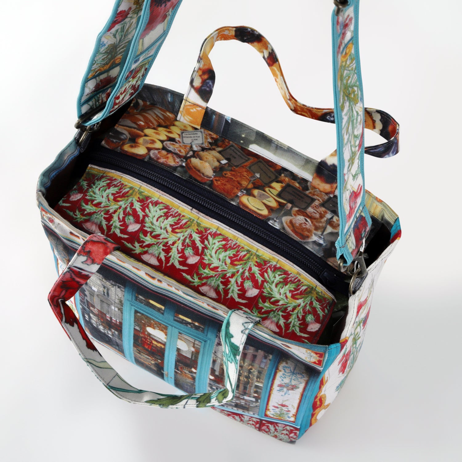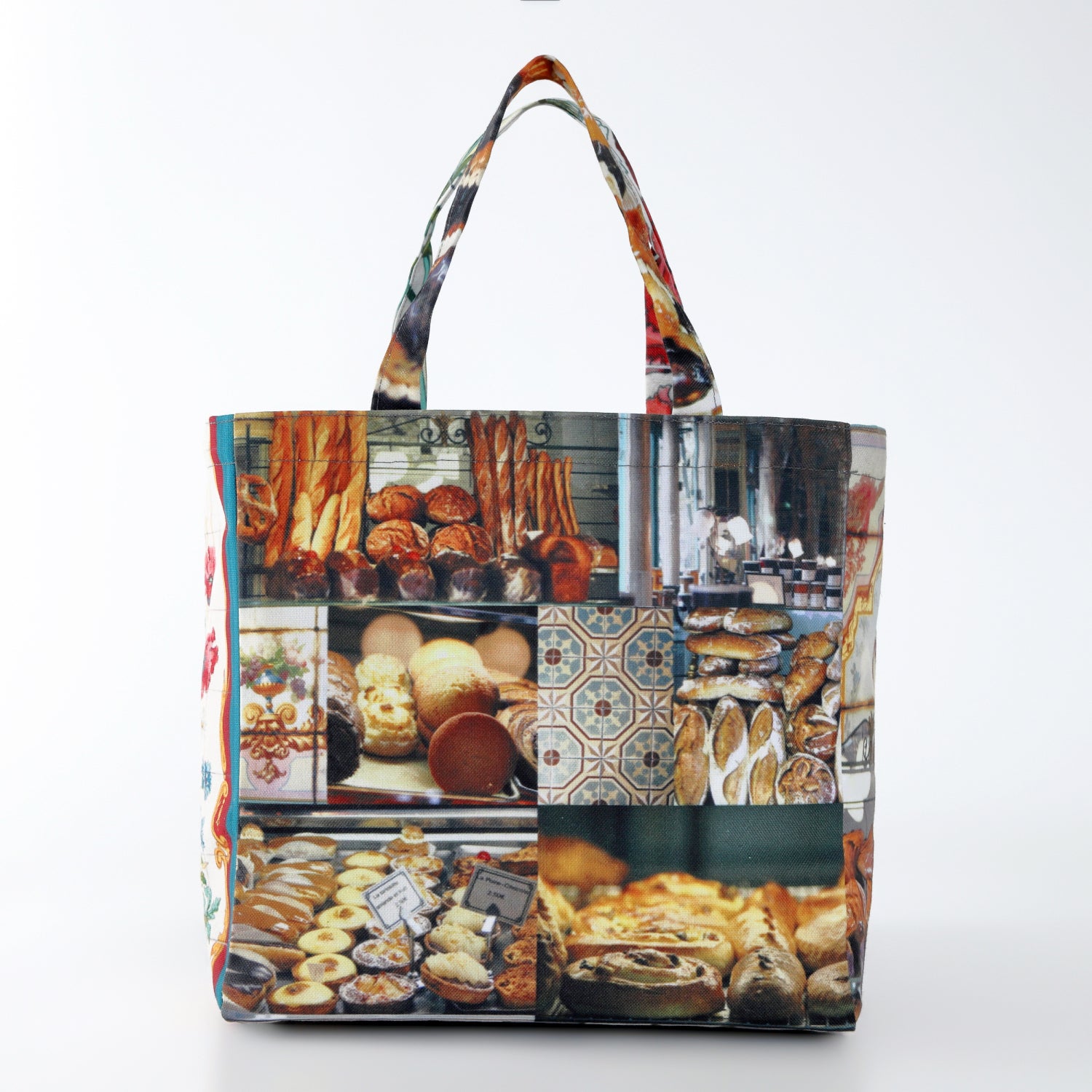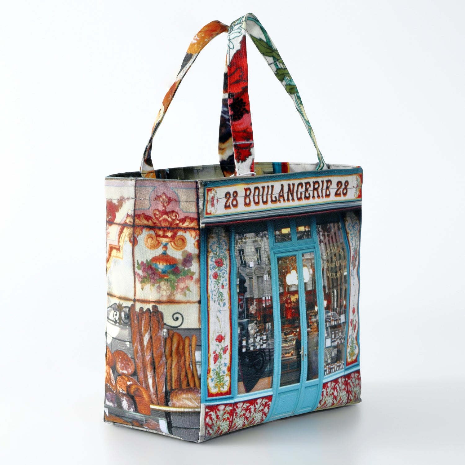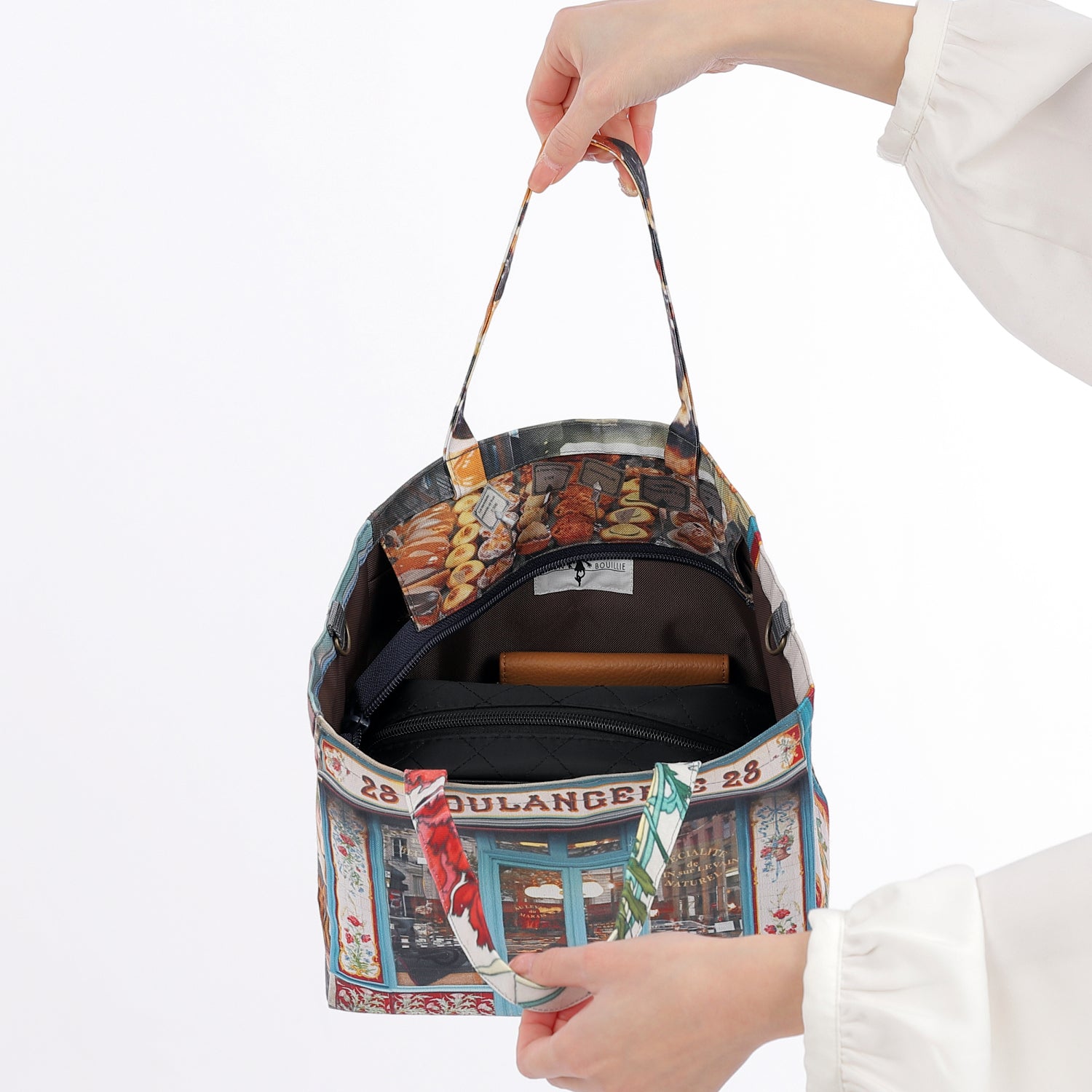 パリにある老舗のパン屋「Boulangerie 28」の外観がプリントされたバッグ。ターコイズブルーのカラーは落ち着いた雰囲気を演出しており、様々なシーンでも使える人気のカラーです。