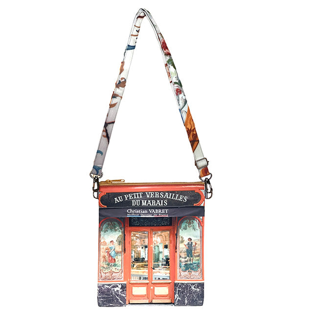 マロン・ブイー 「パリレトロ」コレクションは、パン屋、本屋、ワインのお店、スイーツのお店、カフェなど、パリに実在するお店のデザインをシリーズで展開しています。ショルダーバッグや、トートバッグやスマホケース、小さなポーチ、などコーディネイトしてお楽しみいただけます。