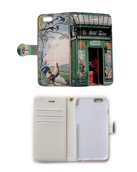 iPhone 6plus・6Splus/7plus/8plus用手帳型スマートフォンカバー。<パリレトロコレクション>スマートフォンカバーが新登場! 丁寧なステッチで仕上げたレザーの風合いのソフトで丈夫な手帳型のスマホカバー。上質な印刷技術で、マロン・ブイーの繊細なデザインがスマートフォンカバーになりました。実在するパリのレトロなお店をデザインした人気の7つのお店をピックアップしました。同じ柄のバッグやポーチとコーディネイトして持つのもとってもオシャレ。マロン・ブイーオリジナル、機能性にも優れ、パリのエスプリの効いたユニークなデザインは、見た人を惹きつけるおしゃれな手帳型スマホカバーです。