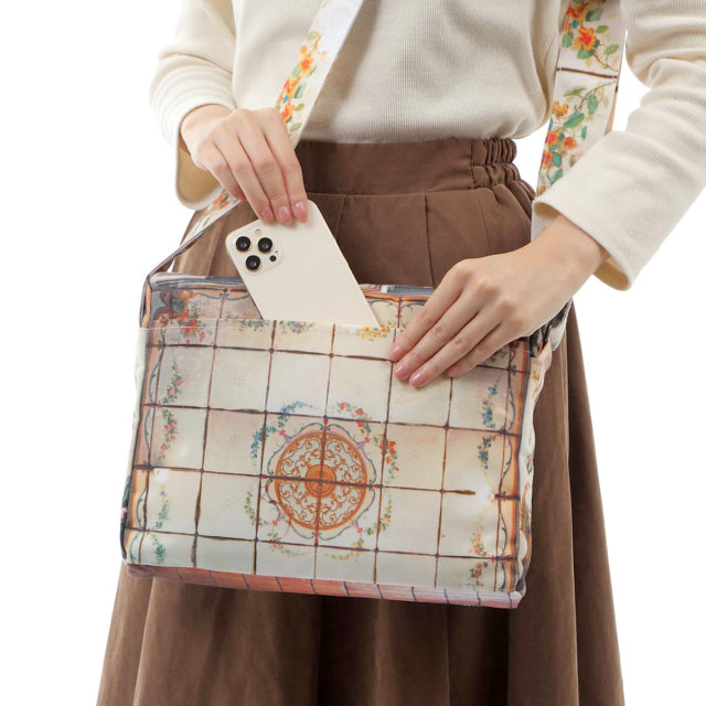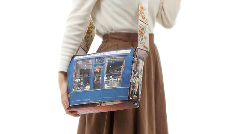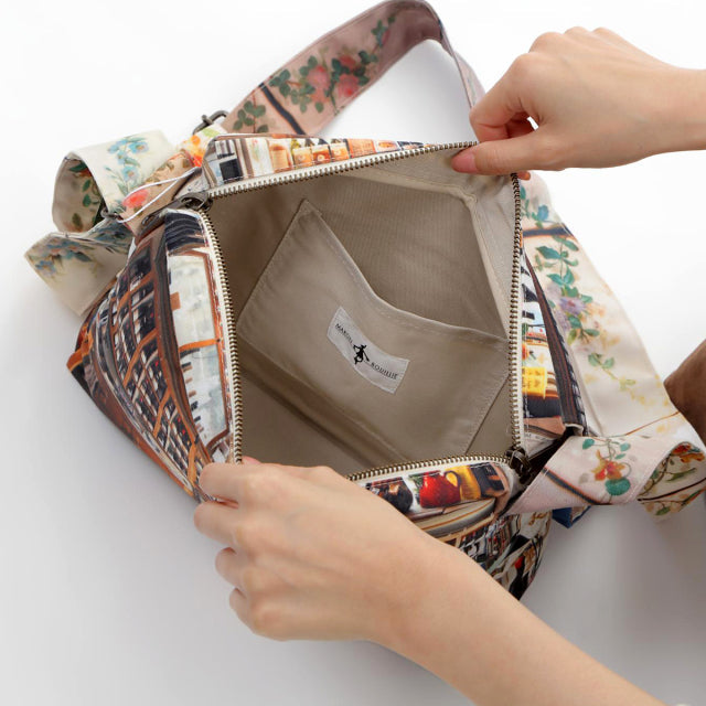 マロン・ブイーのデザイナー「マリー・ブイヨン」オリジナル。パリの街並みを切り取った目を惹くデザインプリントは、ちょっとおしゃれにカジュアルに、お買い物、通勤、通学、ご旅行、日常使いに、長くご愛用いただけるショルダーバッグです。