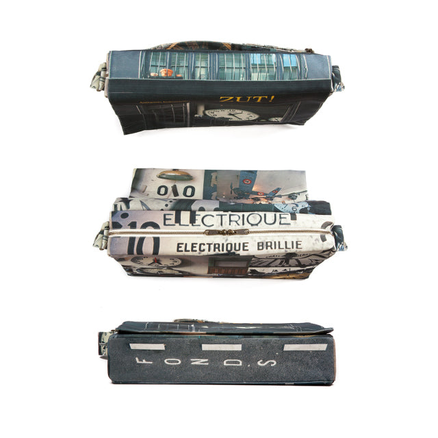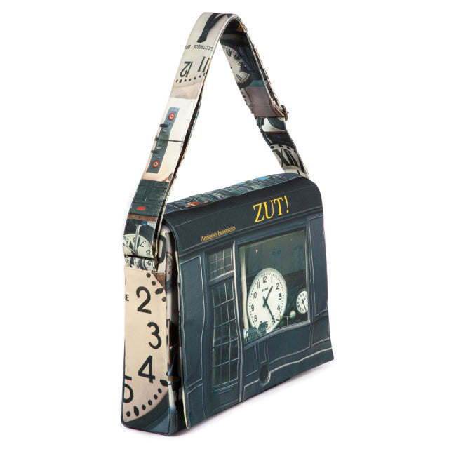 Zut!(ズット!)は、フランス人がびっくりしたときによく言う言葉。これを店名にしたパリに実在するリサイクルショップをデザイナー「マリーブイヨン」がデザインしたモノトーンのショルダーバッグは、シャープなモノトーンで男性にもご愛用いただいているデザインです。モチーフの時計が表や内側にもたくさん登場します。幅広のショルダーベルトのデザインが肩から掛けたときに目を惹く、おしゃれなショルダバッグです。