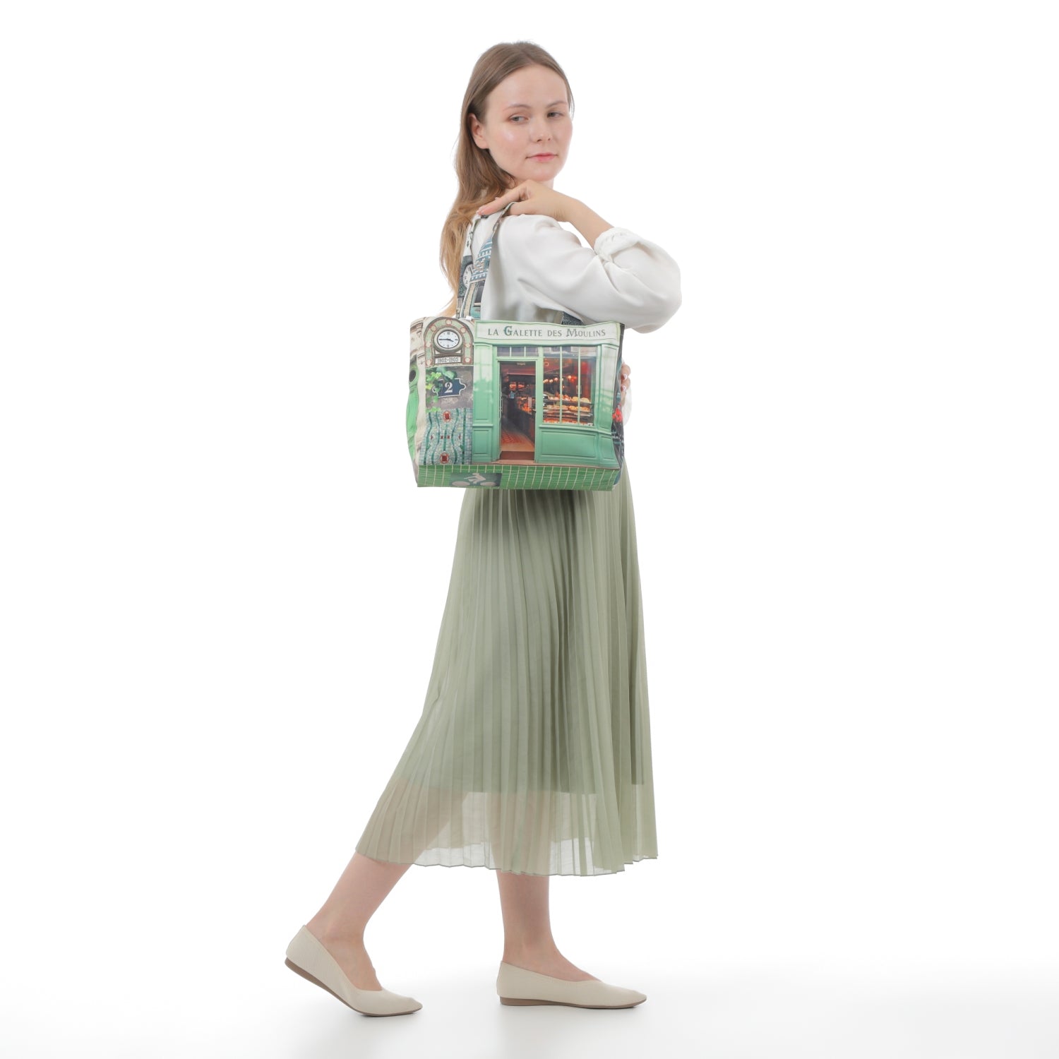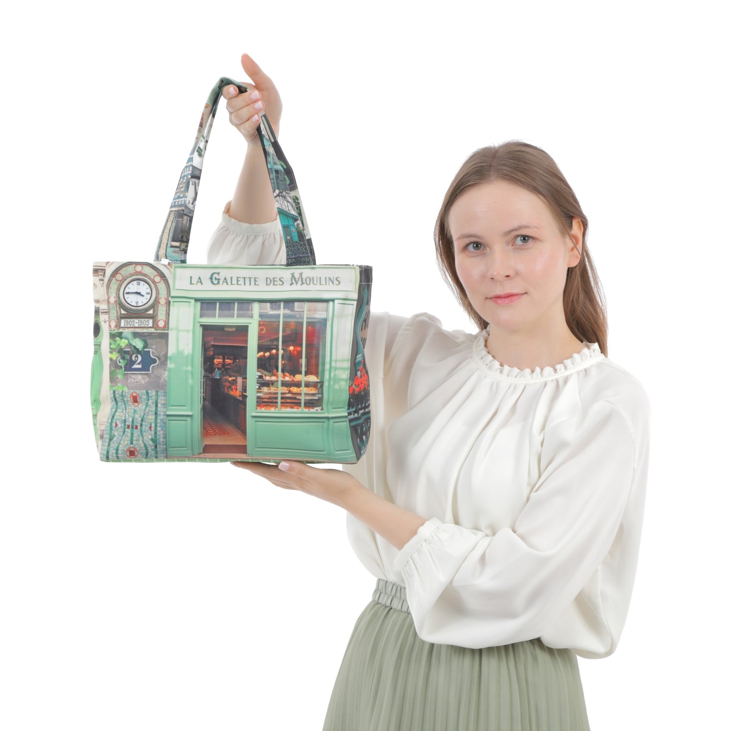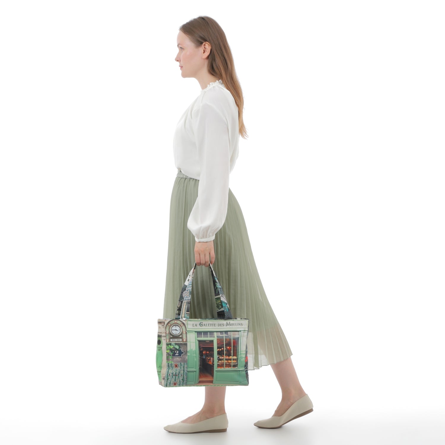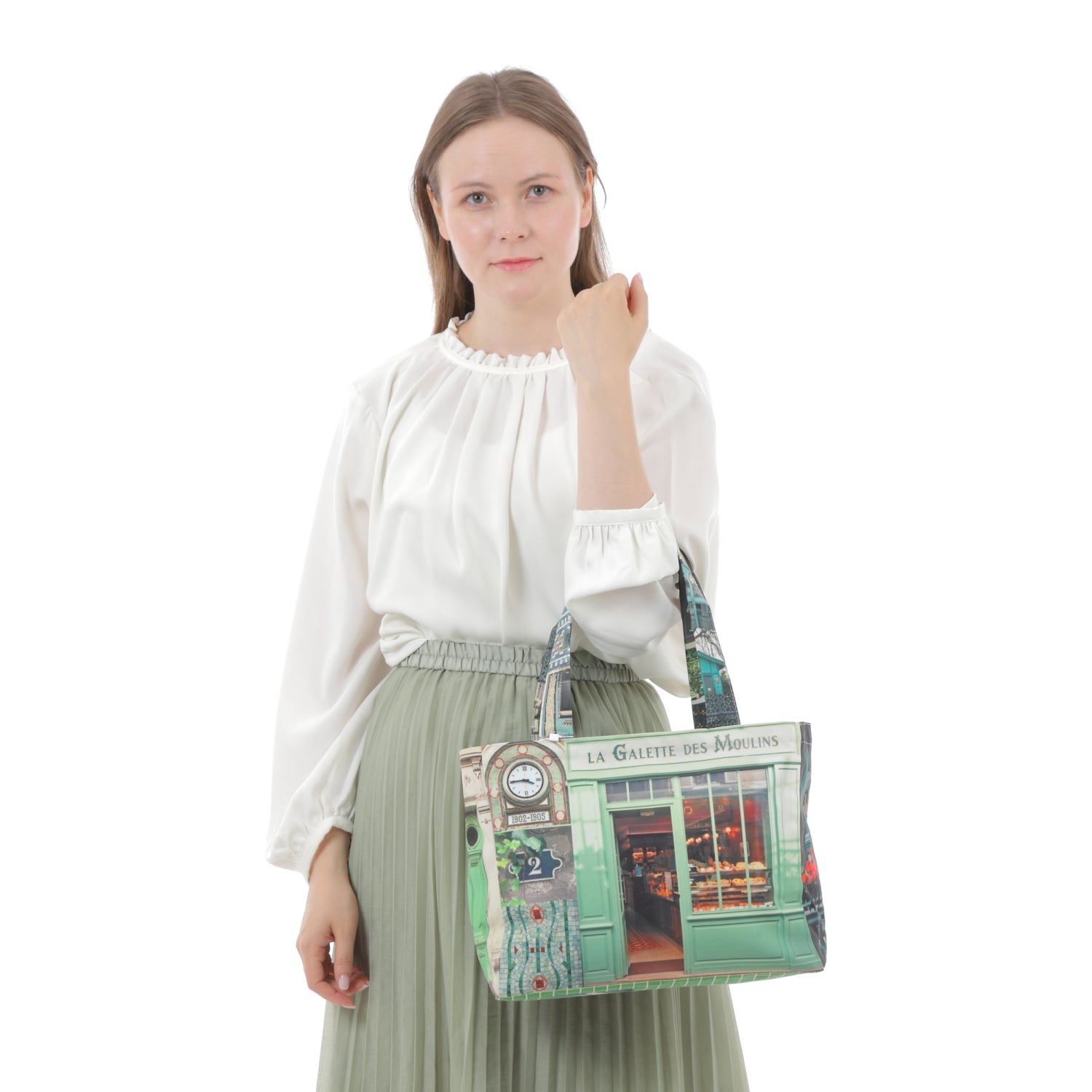 モンマルトルの丘に実在するグリーンで統一されたオシャレなカフェをモチーフにデザインされたさわやかな雰囲気のバッグです。