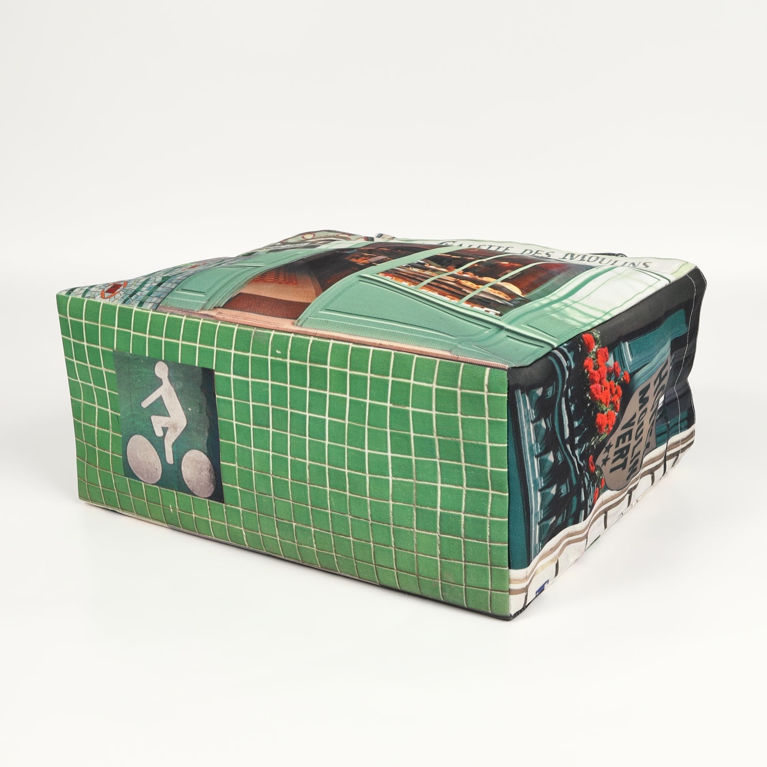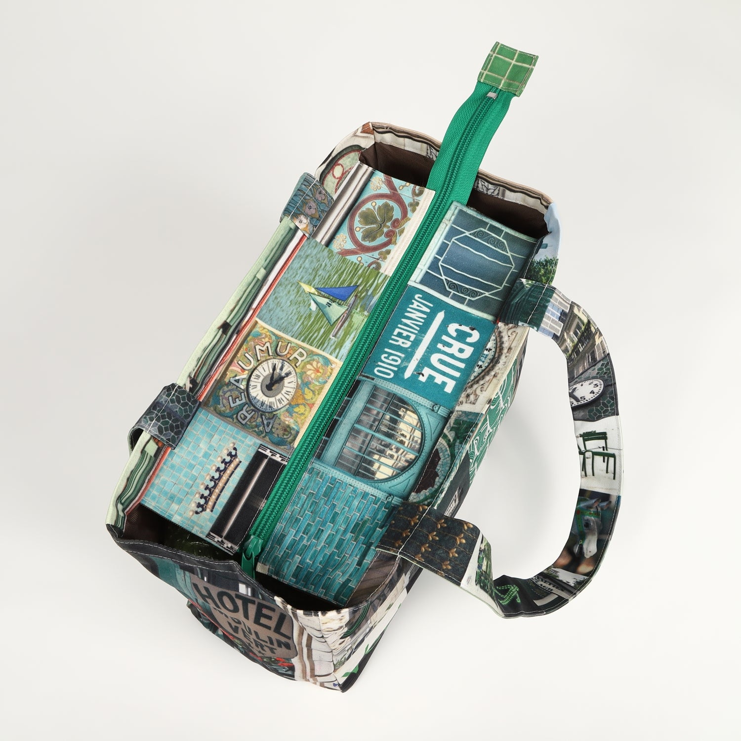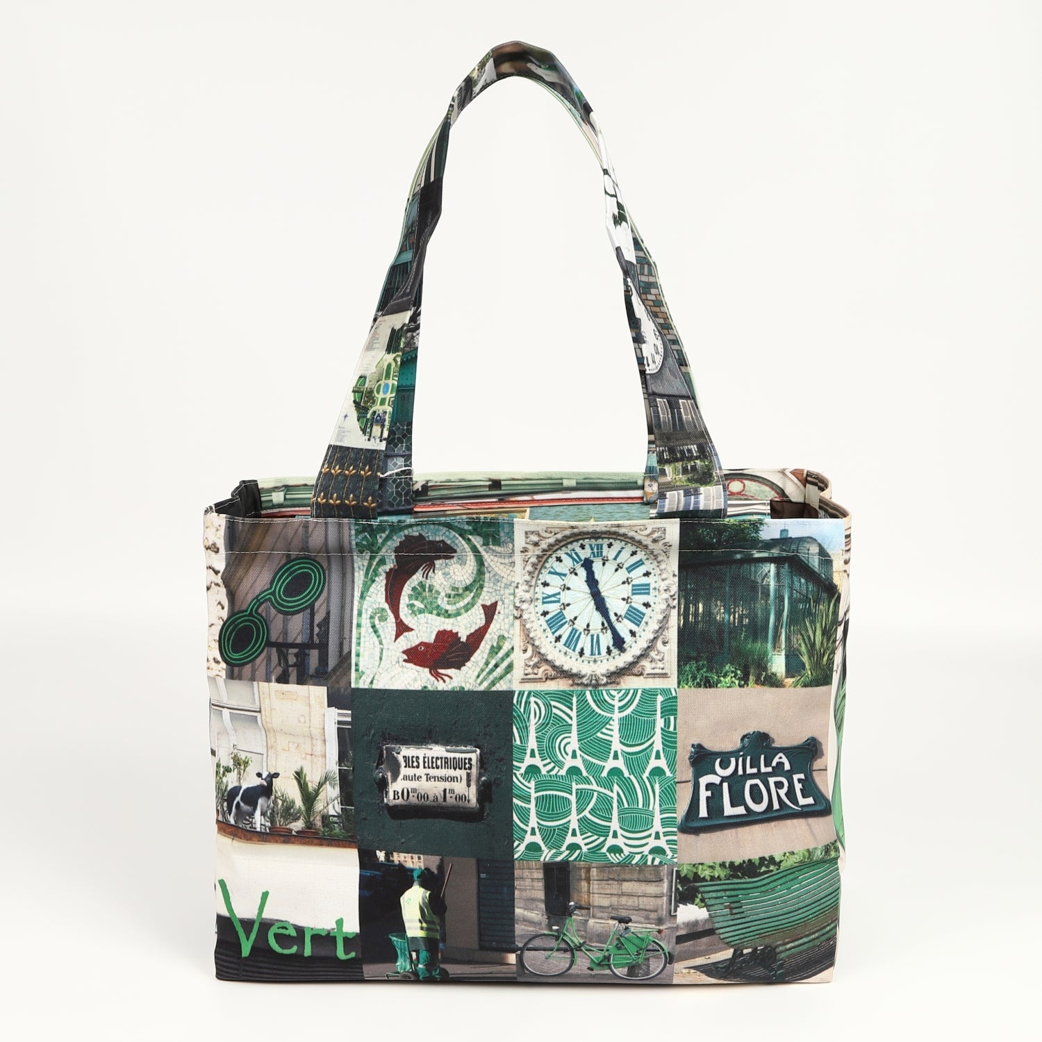 それぞれのバッグはテーマ色に合わせてパリの様々な写真がコラージュされていて、一つ一つの写真をじっくり眺めるとフランス情緒を楽しめる作りとなっております。