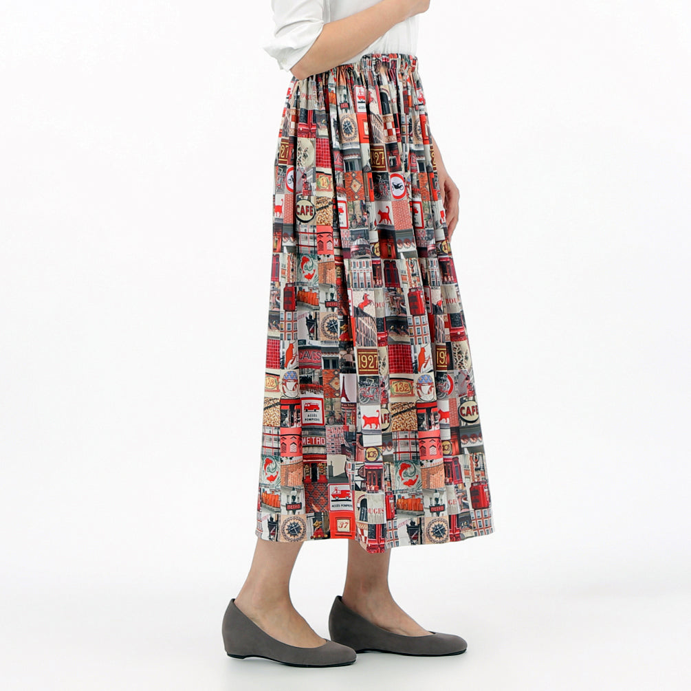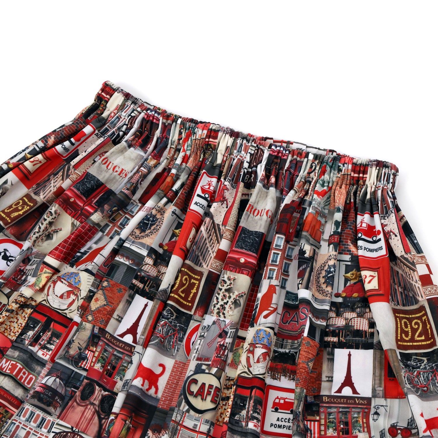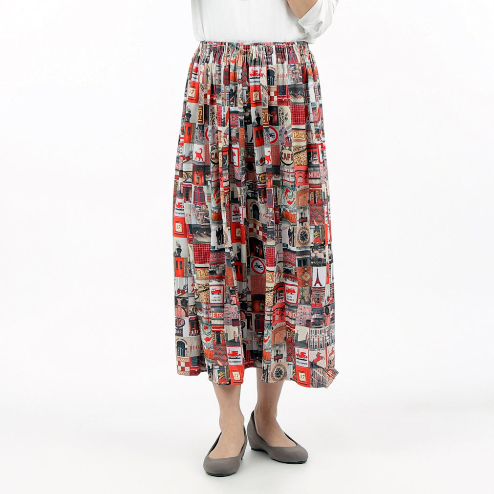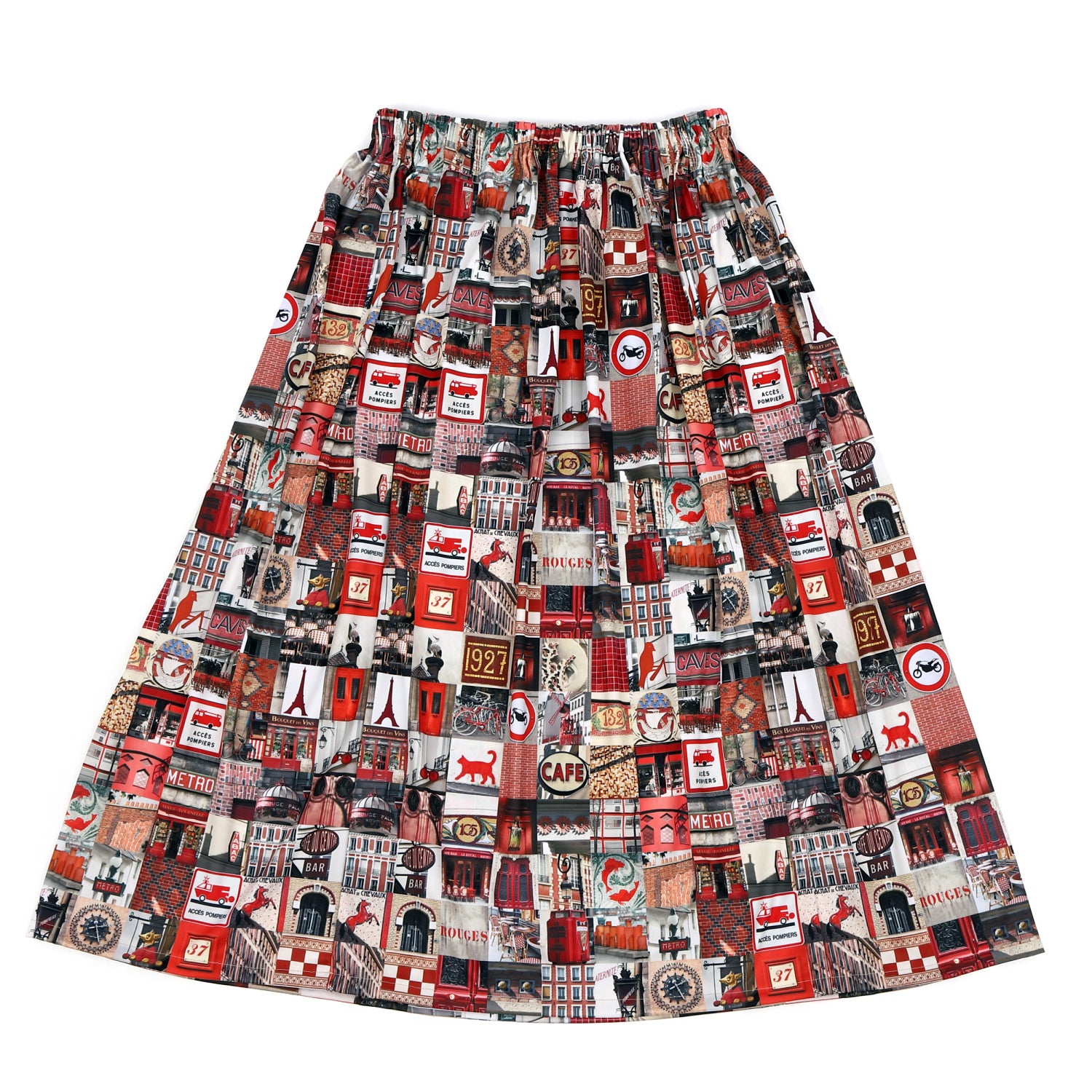デザイナー「マリー・ブイヨン」がパリの街並みや風景を写真に納め、スカートにプリントを施しました。同じシリーズのパリ・カラーバッグとマチ付きポーチとお揃いの柄。ふんわりと気持ちの良い肌ざわりで履き心地抜群。ウエスト部分はゴム仕様となっているので様々なサイズに対応しています。
